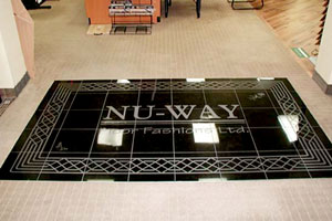 入口エントランスフロアにエッチングし、空間全体の高級感を表現しました。